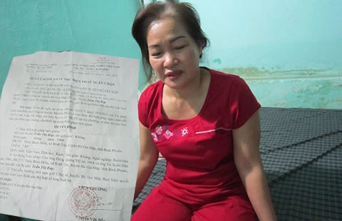 Chiều 18-3, bà Búp được tại ngoại và tiếp tục kêu oan. Quyết định thay đổi biện pháp ngăn chặn với bà Búp (ảnh nhỏ). Ảnh: NĐ