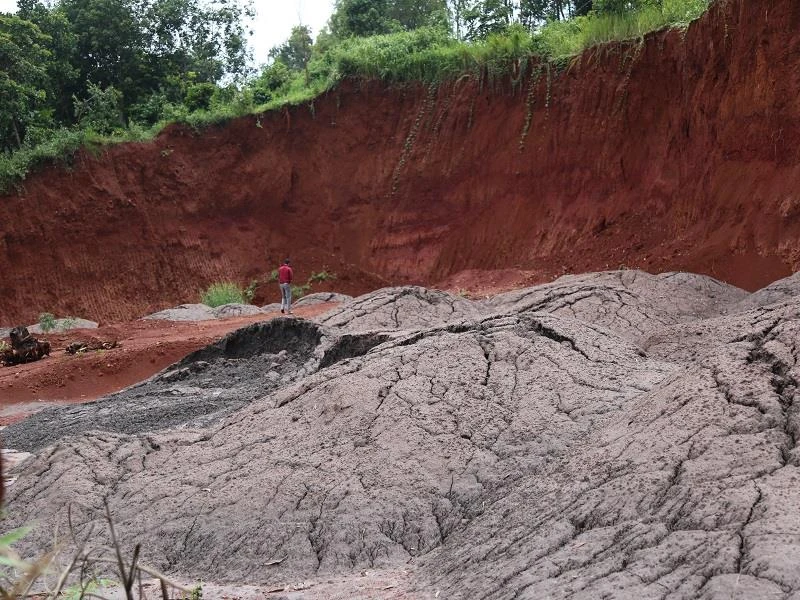 Chất thải từ Nhà máy alumin Nhân Cơ đổ trái phép ra môi trường. Ảnh: H.TRƯỜNG