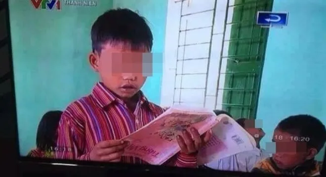 "Chúng tôi đã nhận được thông tin phản hồi về hình ảnh trong phóng sự và đã kiểm tra lại. Đầu tiên, chúng tôi xin nhận lỗi vì đã kiểm duyệt hình ảnh không cẩn thận. Khi kiểm tra lại file gốc thì thực tế là em học sinh đó đã đọc đúng và cầm đúng chiều sách. Tuy nhiên, vấn đề ở chỗ đây là sách cũ nên bìa sách đã bị dán ngược. Chính điều này đã tạo ra hiểu nhầm trên. Chúng tôi chỉ muốn nói rằng việc các em học sinh đọc bài là rất thật, mong mọi người đừng nghi ngờ là các cháu học giả chỉ vì chi tiết này" - ông Nguyễn Nam Sơn, Giám đốc Trung tâm Truyền hình Thanh niên thuộc Trung ương Đoàn, đơn vị thực hiện phóng sự này, nói.