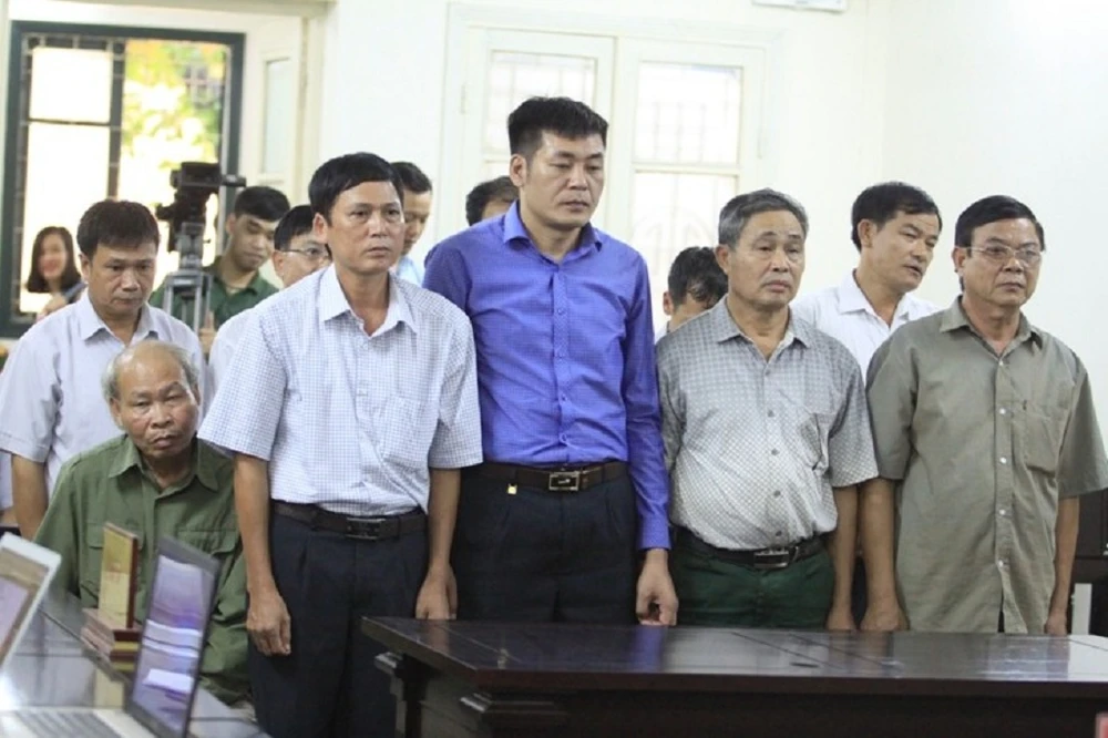 Nguyễn Tiến Triển (nguyên bí thư Đảng ủy xã) 30 tháng tù; Nguyễn Văn Bột (nguyên chủ tịch UBND xã) 18 tháng tù, cho hưởng án treo; Nguyễn Văn Đức (nguyên chủ tịch UBND xã), Bùi Văn Hồng (nguyên xã đội trưởng) và Bùi Văn Dũng (nguyên Trưởng ban Tài chính xã), mỗi bị cáo 30 tháng tù; Nguyễn Văn Minh (nguyên trưởng công an xã) và Nguyễn Văn Khang (nguyên kế toán ngân sách xã), mỗi bị cáo 20 tháng tù.