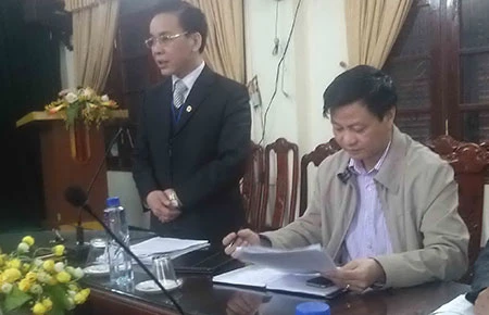 Ông Trần Quang Tấn, Chủ tịch huyện Lục Ngạn (đứng), trong buổi gặp gỡ báo chí ngày 28-2. Ảnh: ND