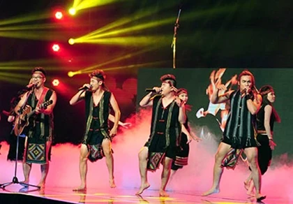 Sự cố sử dụng khăn Piêu làm khố của nhóm F-Band trong đêm bán kết. Ảnh BTC