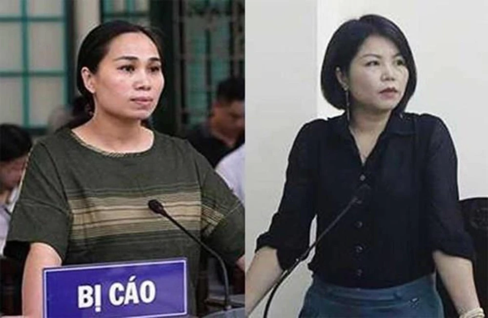 Bị cáo Nguyễn Thị Vân và nữ Thượng úy Bộ Công an Nguyễn Thị Vững tại tòa. Ảnh: TUYẾN PHAN