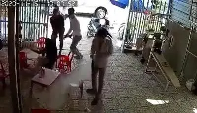 Khi đến nơi ba người đàn ông từ trên xe bước xuống dùng bình xịt hơi cay khống chế chị VTTH (29 tuổi, chủ quán, con bà Chi) đưa lên xe.