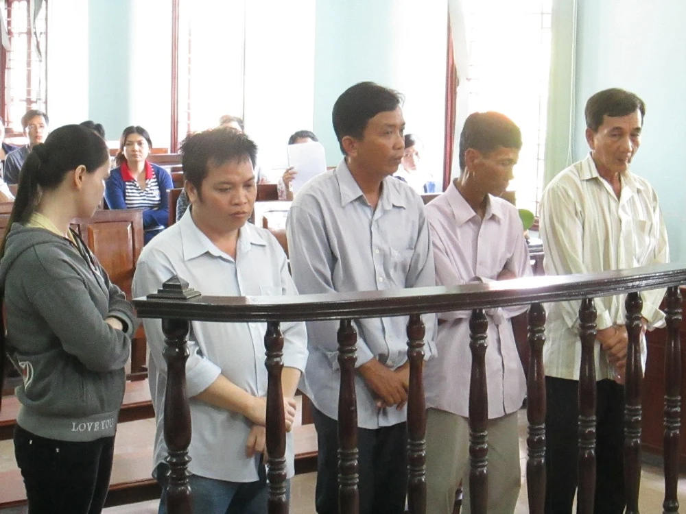 Bị cáo Kiệt (thứ 2 từ trái qua) cùng các đồng phạm tại tòa ngày 1-12. Ảnh: N.NAM
