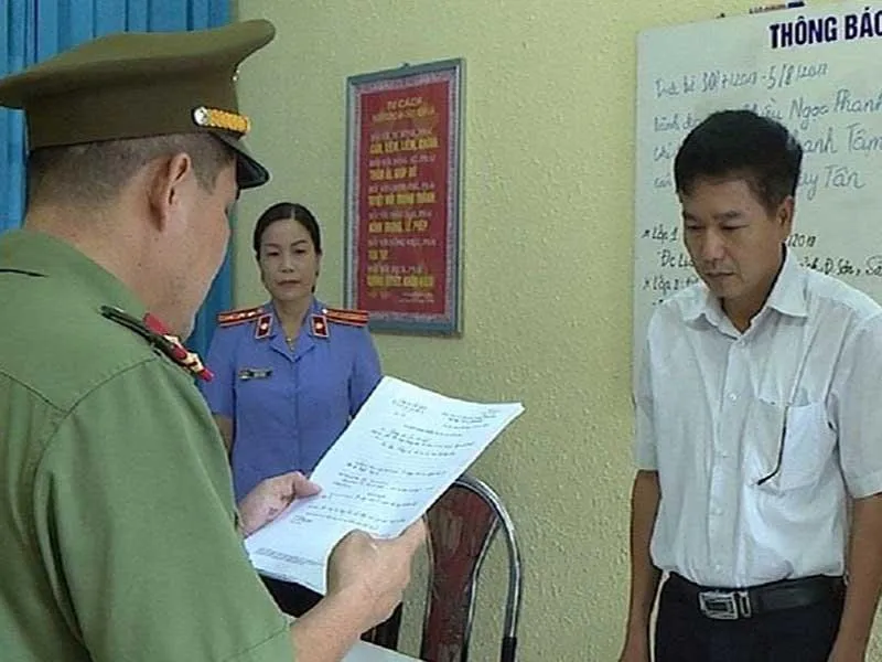 Cơ quan An ninh điều tra Công an tỉnh Sơn La tống đạt quyết định khởi tố đối với ông Trần Xuân Yến, phó giám đốc Sở GD&ĐT. Ảnh: TUYẾN PHAN