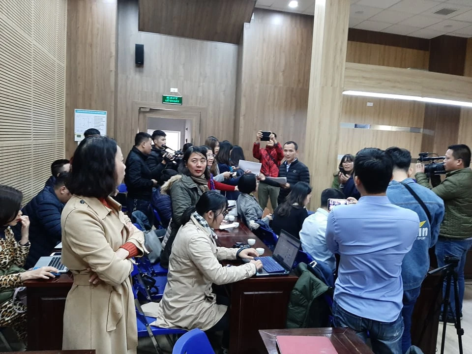 Hơn 30 cơ quan báo chí đợi họp báo tại BV Xanh Pôn ngày 11-12 nhưng cuộc họp chỉ diễn ra chóng vánh trong vòng 5 phút. Ảnh: HÀ PHƯỢNG