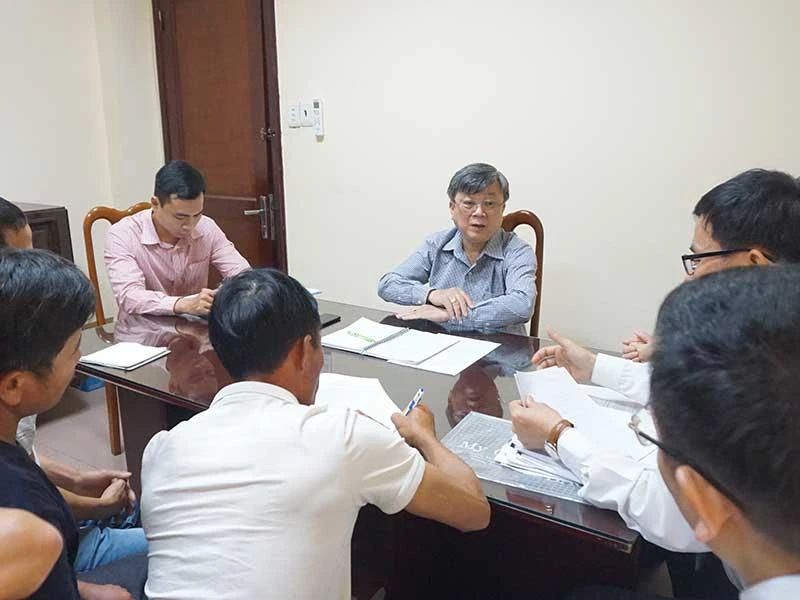 Đại biểu, Ủy viên Ủy ban Tư pháp của Quốc hội Trương Trọng Nghĩa tiếp luật sư và năm bị cáo vụ cưa gỗ khô. Ảnh: NGÂN NGA