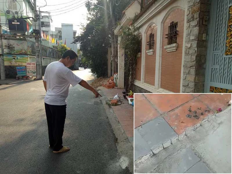 Trước đó, hình ảnh những chiếc đinh sắc nhọn được gắn trên vỉa hè trước nhà của một hộ gia đình trên đường Sư Vạn Hạnh (phường 12, quận 10, TP.HCM) đã gây nên làn sóng bức xúc cho cộng đồng mạng lẫn người dân sinh sống trong khu vực.