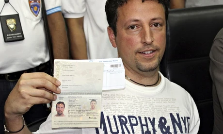 Luigi Maraldi, người có tên trong danh sách hành khách chuyến bay MH 370. Thực tế hội chiếu của anh đã bị đánh cắp . Trong ảnh, Luigi đang trình ra hộ chiếu mới được cấp của anh