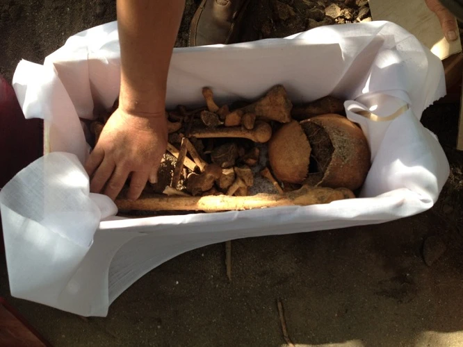 Ngoài ra, theo lời kể của gia đình, khả năng những hài cốt này đã có trước năm 1966, vì từ năm 1966 gia đình ông về đây định cư không ai đưa người đến đây chôn cất. Đặc biệt, những hài cốt này khi đào được ở nhiều vị trí, tư thế khác nhau như chụm 5 đầu lại, thân thẳng ra sau như hình ngôi sao, có mộ đôi, có mộ chỉ có một hài cốt trong tư thế ngồi…