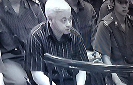 Bầu Kiên ngồi nghe các luật sư bào chữa sáng 28-5. (Ảnh chụp qua màn hình)