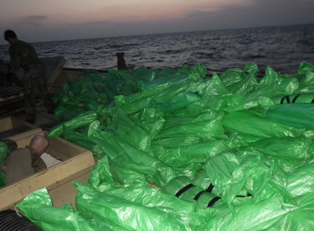 Lô vũ khí mà tàu USS Monterey thu giữ được ở phía bắc biển Ả Rập. Ảnh: US NAVY