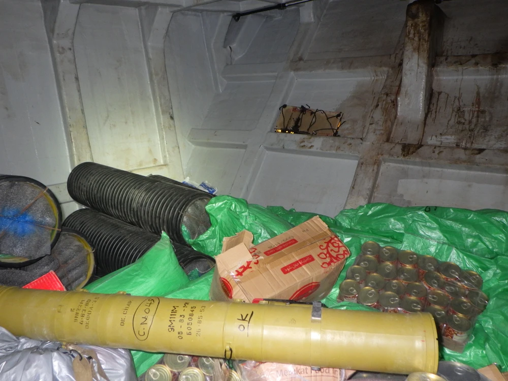 "Lô vũ khí bao gồm hàng chục tên lửa tự hành chống tăng do Nga sản xuất, hàng ngàn súng trường tấn công Type 56 của Trung Quốc và hàng trăm súng máy PKM (do Nga thiết kế - PV), súng bắn tỉa và súng phóng lựu. Các bộ phận vũ khí khác bao gồm các ống ngắm quang học tiên tiến" - Hạm đội 5 viết trong tuyên bố đăng ngày 8-5 trên Twitter.