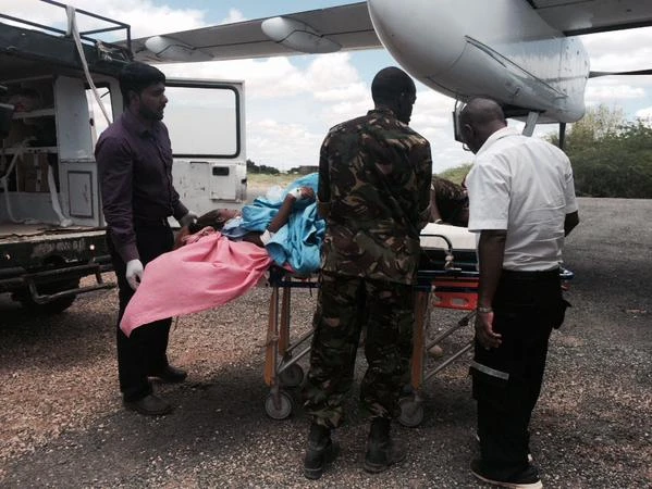 Nạn nhân được đưa lên máy bay để vận chuyển về bệnh viện thủ đô Naroibi (ảnh: Dennis Okari/ Al Jazeera)