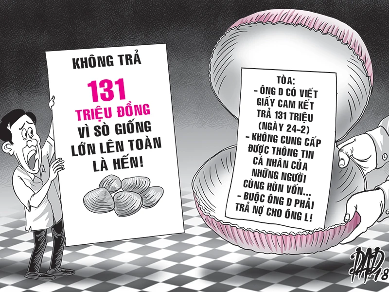 Tuy nhiên, đến hôm sau, anh D. không chịu trả, nói những người cùng hùn vốn với anh mua sò giống không đồng ý trả tiền. Thay vào đó, anh D. chỉ viết cho anh L. một tờ biên nhận thừa nhận nợ tiền sò giống. Do đòi mãi mà anh D. không chịu trả tiền sò giống nên anh L. khởi kiện yêu cầu TAND huyện Thạnh Phú giải quyết, buộc anh D. có trách nhiệm trả cho anh hơn 131 triệu đồng.