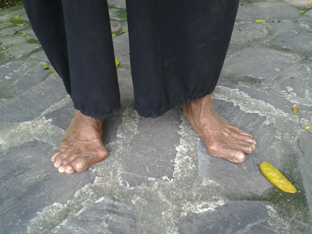 bà cụ có đôi bàn chân khá..."đặc biệt", đôi bàn chân dài, 2 ngón cái bẹt ra hai bên. Hình như cả đời chưa bao giờ thấy bà mang dép?
