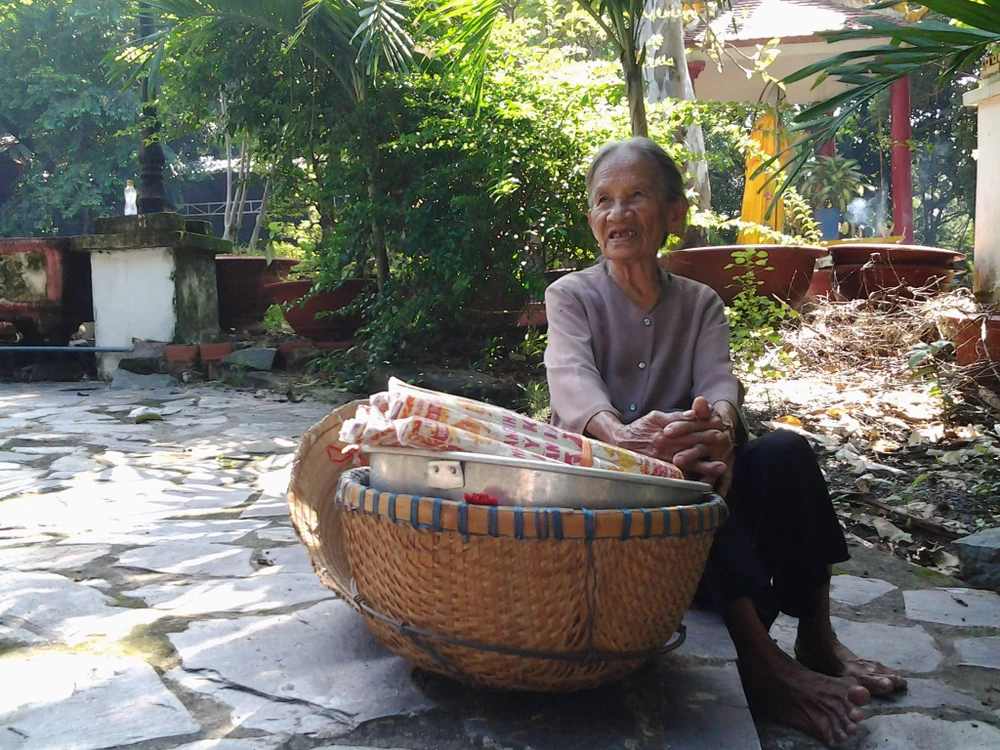 Không biết bà sống ở đâu, 6 giờ sáng thấy đội thúng nhang lên núi bán cho khách hàng hương, 6 giờ tối đội thúng nhang về