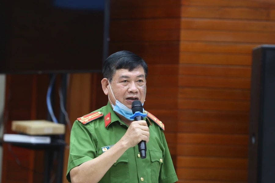 Thượng tá Võ Văn Minh, Phó Thủ trưởng Cơ quan CSĐT Công an tỉnh Quảng Nam thông tin tại buổi họp báo. Ảnh: THANH NHẬT