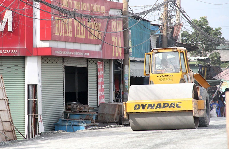 Đường Kinh Dương Vương đang hoàn thành những công đoạn cuối cùng. Ảnh: LÊ THOA