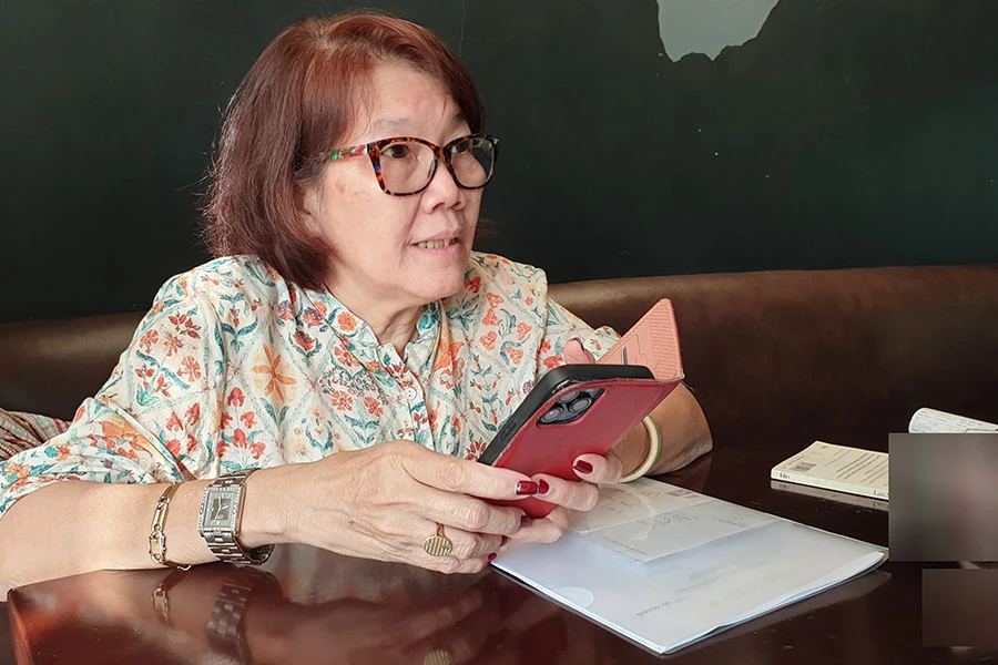 Bà Nga trình bày sự việc với PV Pháp Luật TP.HCM. Ảnh: NGUYỄN TÂN