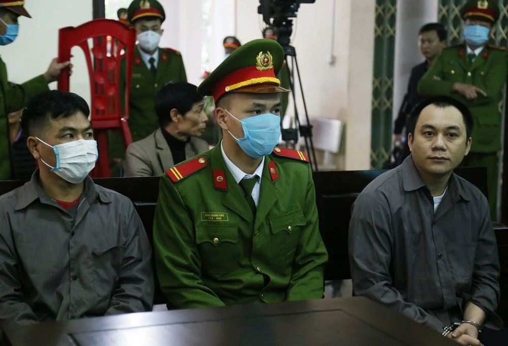 Bị cáo Ngô Văn Sơn (trái) và Lê Ngọc Hoàng tại tòa. Ảnh: TP