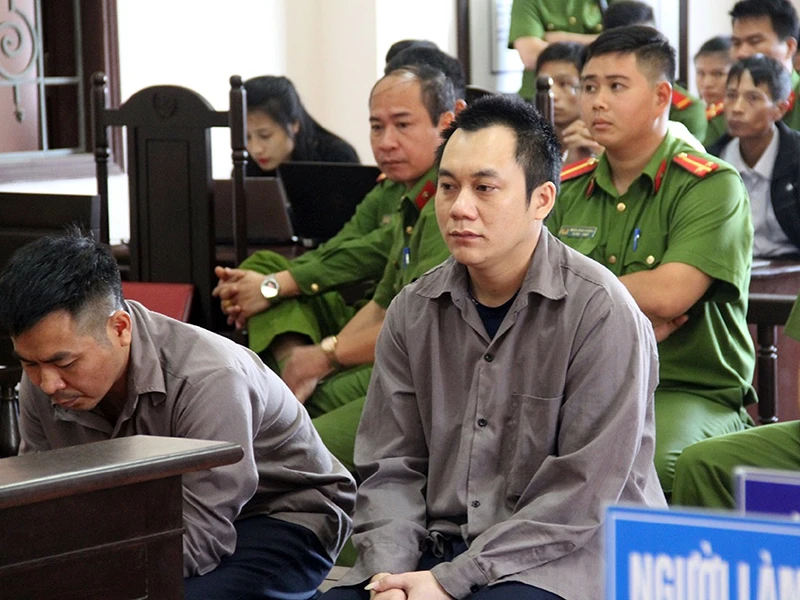 Hai tài xế Ngô Văn Sơn (trái) và Lê Ngọc Hoàng tại tòa. Ảnh: TP