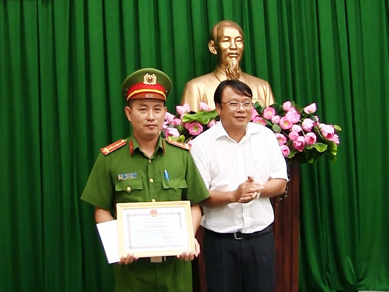 Chủ tịch UBND quận Bình Thạnh đã trao thưởng cho đội ma túy công an quận. Ảnh: Nguyễn Tân