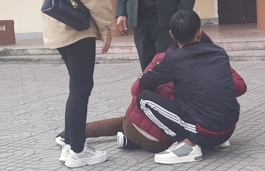 Mẹ của bị cáo Nguyễn Hoài Giang quỵ khóc ở sân tòa án kêu con bị oan.