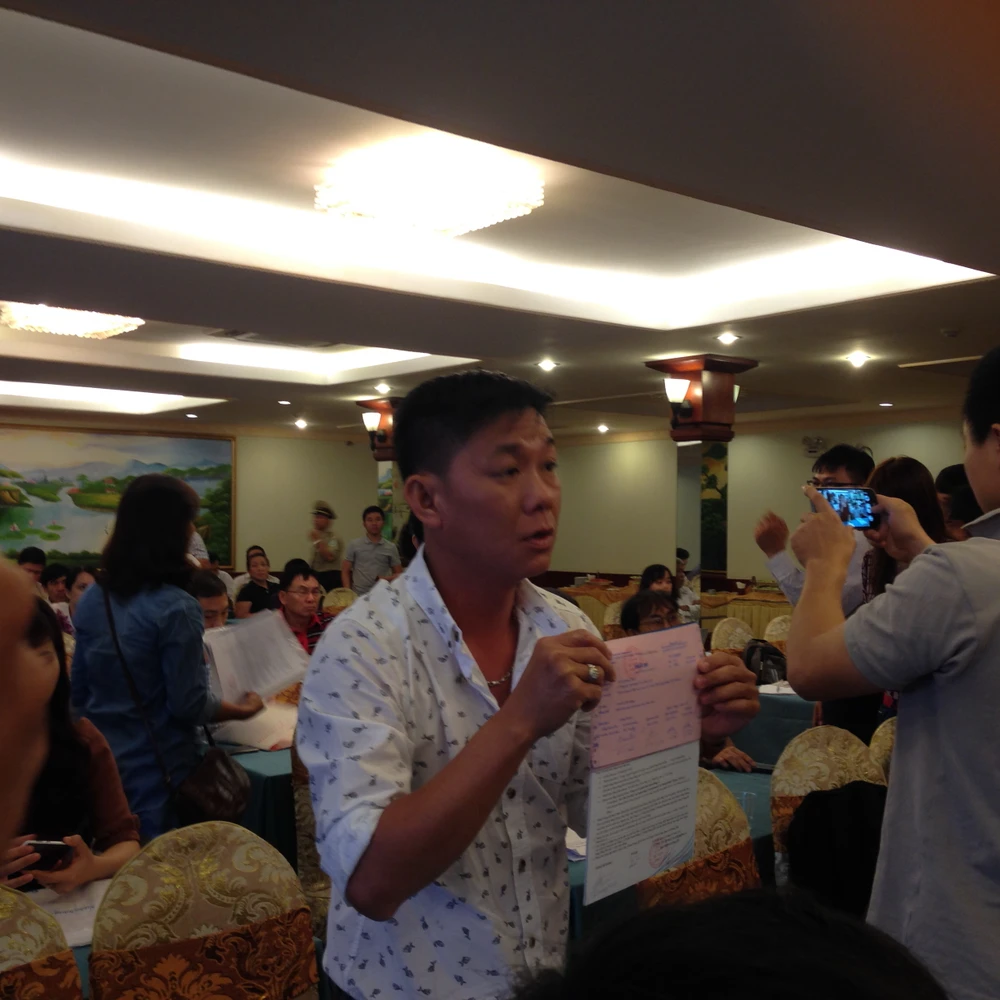 Nhiều khách hàng bức xúc tại buổi họp báo.