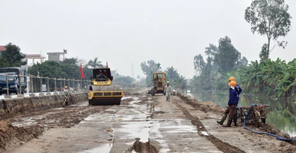 Đoạn đường thi công quốc lộ 10 đi qua huyện Vĩnh Bảo