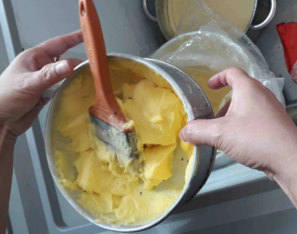 Khay chứa bơ dùng làm bánh có côn trùng. Ảnh: TRẦN NGỌC