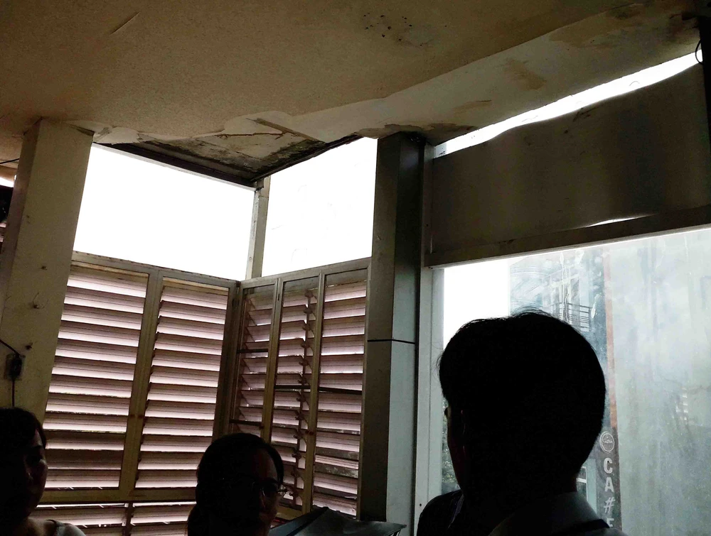 Trần nhà bị bong tróc. Ảnh: TRẦN NGỌC