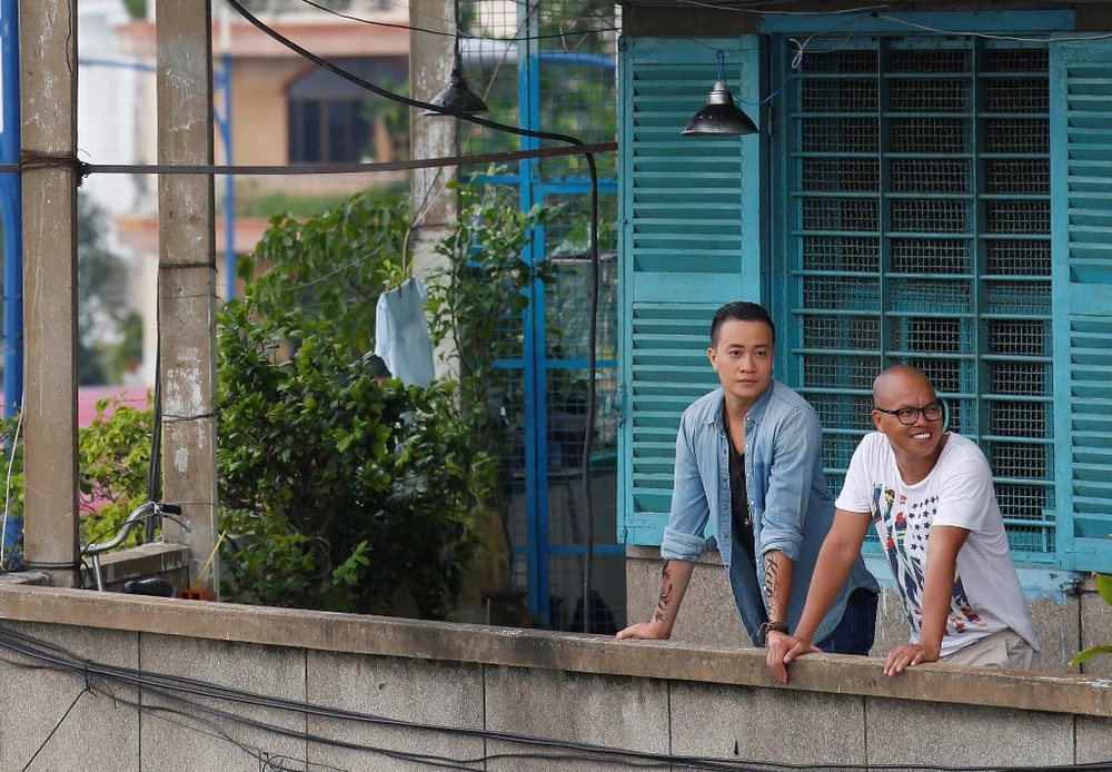 Đạo diễn Vũ Ngọc Đãng (phải) và diễn viên Lương Mạnh Hải trên hậu trường thực hiện Hot boy nổi loạn phần 2. Ảnh: Đoàn làm phim cung cấp