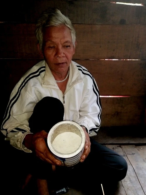 Cụ Hồ Văn Sơn (67 tuổi, ngụ thôn 6) cho biết sau khi nhận được số gạo trong quà tết đã đem về nấu ăn. Khi vo gạo, ông ngửi thấy mùi xà phòng đặc quánh nên không dám ăn nữa. Một lúc sau đem gạo vãi cho gà ăn thử thì gà rù lại một chỗ, đem cho chó ăn thì con chó cũng chết ngay sau đó.