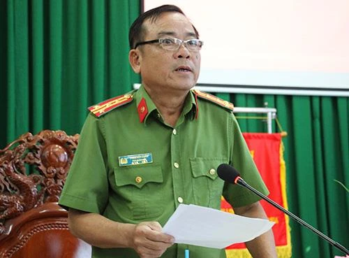 Đại tá Phạm Hữu Châu, Phó giám đốc Công an Long An thông tin vụ án tại họp báo. Ảnh: H.NAM (VNE)