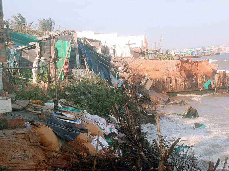 Cụ thể, hiện nay bờ biển thôn Vĩnh Hưng (xã Vĩnh Tân) cách Trung tâm Nhiệt điện Vĩnh Tân khoảng 2 km đang bị sạt lở với chiều dài khoảng 800 m, xâm thực vào đất liền 20-30 m. Việc xâm thực này làm hư hỏng hàng loạt nhà dân cùng công trình hạ tầng kỹ thuật trong khu dân cư, ảnh hưởng đến đời sống sinh hoạt của 114 hộ dân sinh sống ven bờ biển.