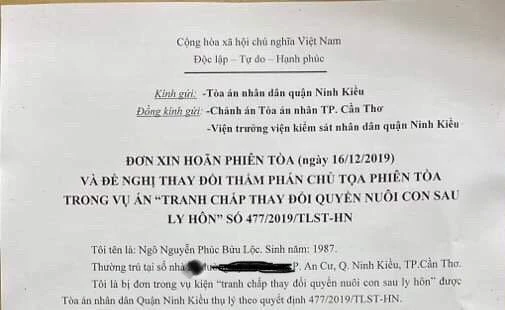 Đơn xin hoãn phiên tòa ngày 16-12 của bị đơn.