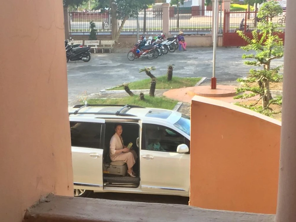 Nhật Kim Anh lên xe rời trụ sở TAND quận Ninh Kiều chiều 16-12. Ảnh: NHẪN NAM