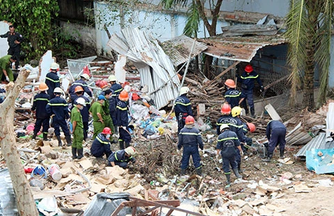 Cơ quan điều tra khám nghiệm hiện trường vụ nổ. Ảnh: X.NGỌC