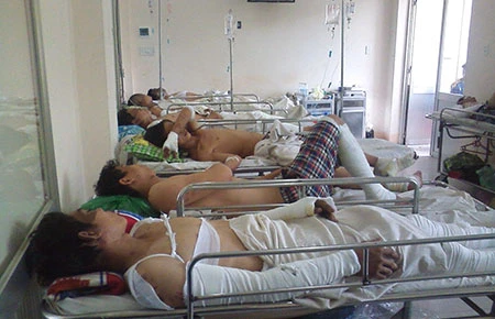 Các công nhân đang được điều trị tại khoa Bỏng. Ảnh: H.VI