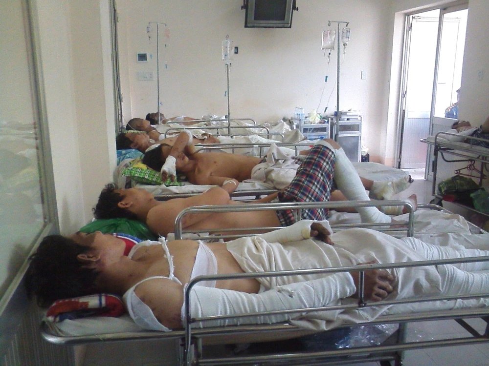 Các công nhân bị tai nạn trong vụ nổ kinh hoàng tại nhà máy sản xuất thép Pomina 3 (tỉnh Bà Rịa - Vũng Tàu) đang được điều trị tại Khoa bỏng, bệnh viện Chợ Rẫy. Ảnh: H.Vi