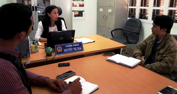 Thẩm phán Ngà trao đổi vụ việc. Ảnh: LQL