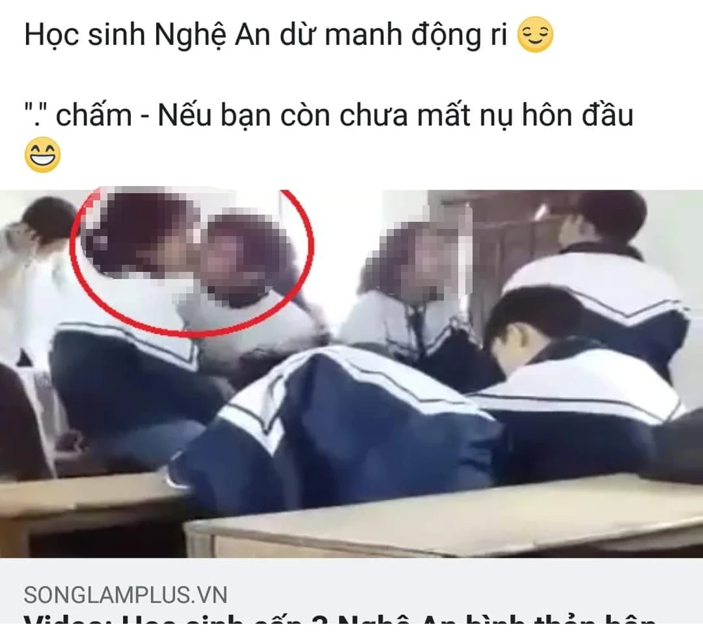 Theo người thân và thầy giáo của em L., ngày 8-3, nhà trường tổ chức ngày Quốc tế Phụ nữ nên có cho phép học sinh đưa điện thoại đến lớp học. Tại lớp học của em L., trong lúc vui đùa, các em đã thách thức học sinh nam hôn học sinh nữ dẫn đến hành động như trong clip. Sau đó, trang mạng xã hội Songlam đăng tải, xuất bản video trên với tựa đề "Video học sinh cấp 3 Nghệ An bình thản hôn nhau trên lớp học". Rồi trang Facebook Nghệ An - trang có hơn 1,2 triệu tài khoản Facebook theo dõi đăng đường link video trên ở trang Songlam.