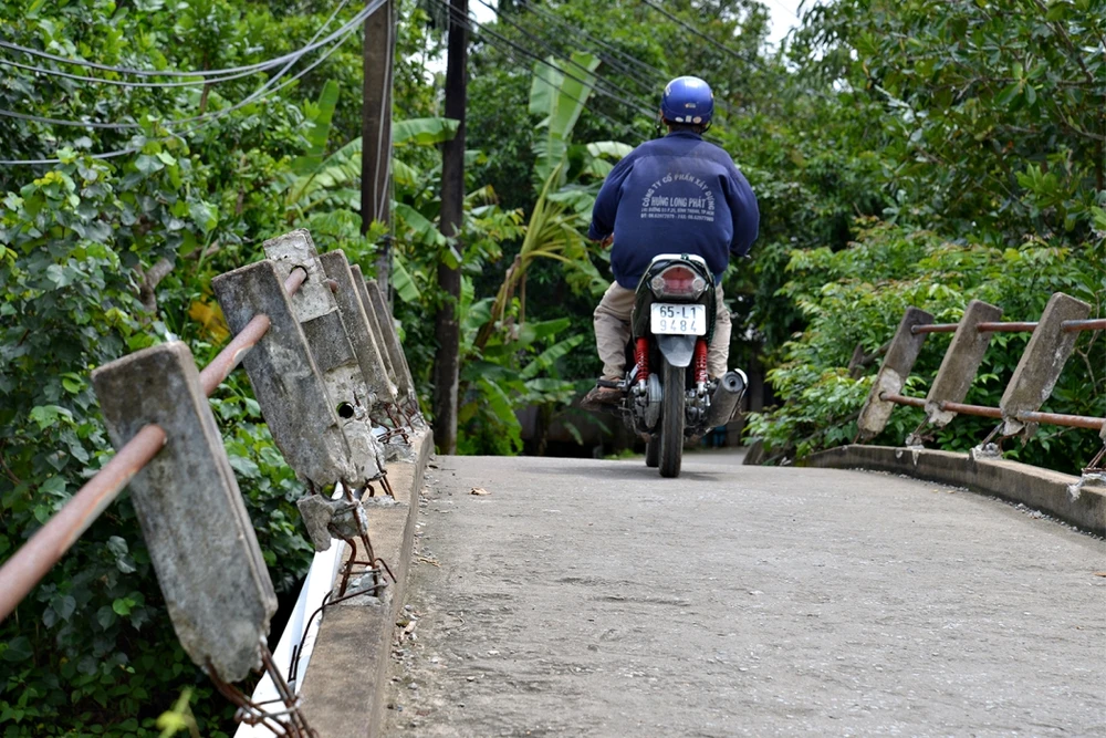 Một trong những cây cầu bị đập phá lan can. Ảnh: GIA TUỆ