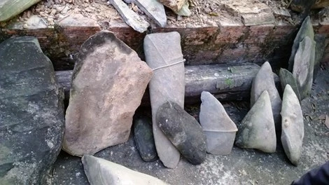 Bộ đàn đá nghi đồ cổ người dân đào được. Ảnh: Đông A