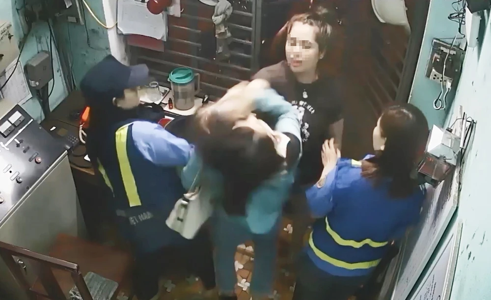 Sau đó, đôi nam nữ lao vào bên trong chửi bới, người phụ nữ đã dùng tay đánh trúng mặt phóng viên Phương Anh mặc cho lúc này nhiều nhân viên gác chắn can ngăn. Tuy bị trầy xước trên mặt nhưng phóng viên Phương Anh không trình báo công an.