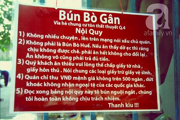 Ngay sau khi các báo đăng tải những tấm bảng bá đạo, có một không hai này, quán bún bò gân của anh Nguyễn Hoàng Anh Dũng đã đông khách bất ngờ. Rất nhiều khách đã tìm đến vỉa hè chung cư Tôn Thất Thuyết để thưởng thức món bún bò gân. Tuy nhiên, cho rằng tấm nội quy có nội dung phản cảm, bảo vệ khu phố và công an khu vực đã đến tịch thu những tấm bảng này.