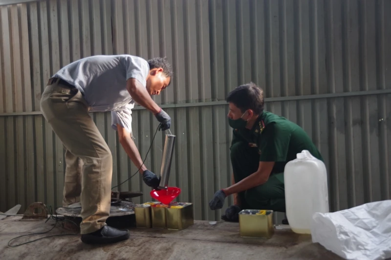 Kể từ khi bị biên phòng triệt phá, bên ngoài kho, lực lượng biên phòng, công an cử cán bộ chiến sĩ bảo vệ, trông giữ 24/24 để tiến hành các thủ tục xác minh mở rộng điều tra.