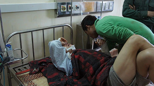 Anh công nhân bị thương nặng đang mong người thân biết tin vào chăm sóc anh ở BV Đa khoa tỉnh Hà Tĩnh. Ảnh: ĐẮC LAM